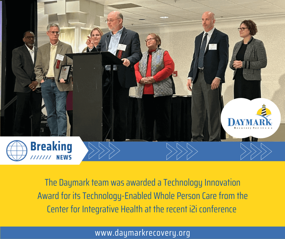 At Daymark, we are passionate about whole-person care and the use of technology to improve the way we deliver it. At the recent i2i conference in Winston Salem, we were presented with an award that highlights our accomplishments in Technology Innovation. Both Billy West, CEO, and Jerold Greer, CIO, recognized various teams across the organization for their contributions to the delivery of Technology-Enabled Whole Person Care.